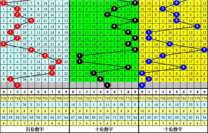 其中,号码0-9开出次数分别为:号码0开出4次、1开出4次、2开出2次、3开出3次、4开出4次、5开出1次、6开出1次、7开出6次、8开出3次、9开出2次。