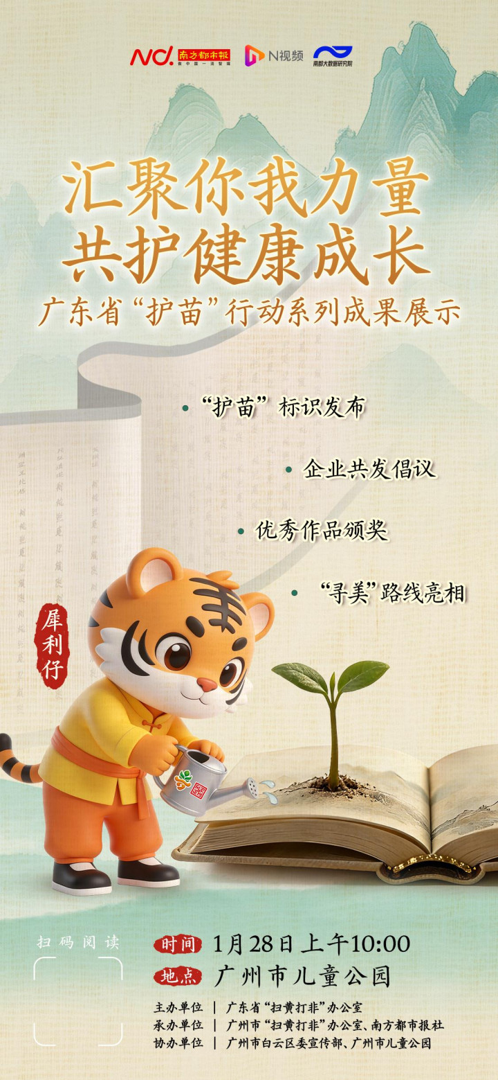 本次活动由广东省“扫黄打非”办公室主办,广州市“扫黄打非”办公室、南方都市报社承办,广州市白云区委宣传部、广州市儿童公园协办。活动串联书香悦苗、安全护苗、法治育苗、文化润苗四大篇章,全方位展现广东“护苗”行动的丰硕成果,擘画关爱未成年人健康成长的崭新篇章。