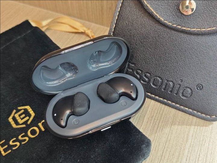 ESSONIO是一个意大利品牌,在国内市场产品线较多,涵盖降噪耳机和骨传导耳机等,其中睡眠耳机有几款,价格普遍在千元左右。耳机采用人体工学设计,耳翼贴合耳部,入耳角度约45°,佩戴时对耳廓的压力相对有限,侧睡或翻身时耳机位置较稳定,不容易移位。便携性上,耳机整体较薄,可轻松放进口袋。支持出舱自动配对,单双耳、左右耳都可以自动配对,使用方式偏向便捷。