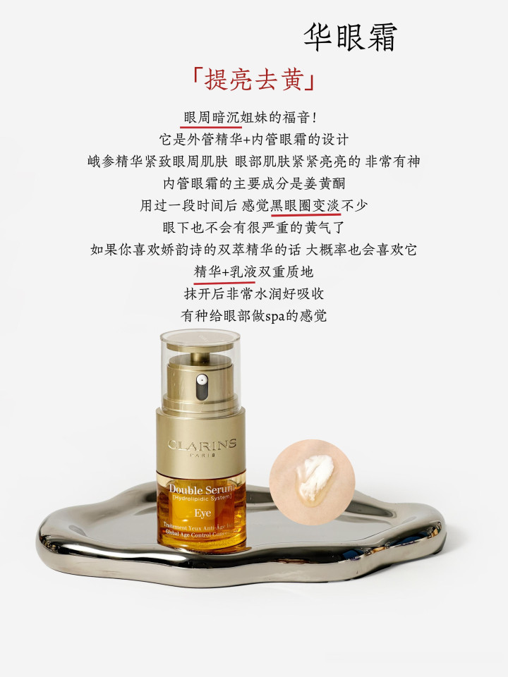 它是眼精华+眼霜二合一,连质料都是双重的,肤感就很水润的乳液质料,每次小滴就够了,上脸很快给与不会浓重,可以防御外界对眼周的伤害,同期滋养眼周淡化纹路,我认为它会更符合年青肌。