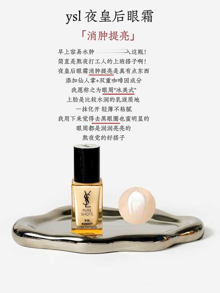 主要作用是紧致眼周、保湿消肿,双效咖啡因,告别熬夜泡泡眼,摩洛哥仙东谈主掌花,改善眼周阴森,由内焕亮,YSL的护肤线都还蛮冷门的,泵头策画取量很好放置。