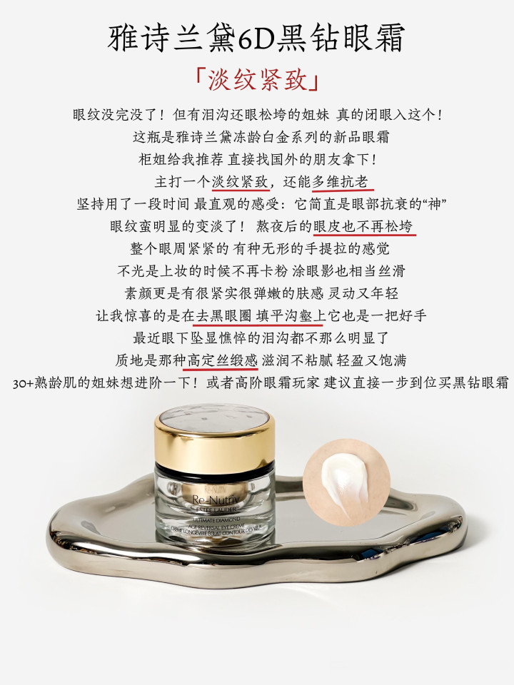 贵妇眼霜天花板的成果真不是吹的,相持用,就能发现眼周看起来丰盈许多,困扰我很久的泪沟都嗅觉嘭起来了,所有这个词这个词东谈主立马显年青几岁,心何况眼周的小细纹和暗千里也肉眼可见的淡化,化妆遏抑易卡纹。