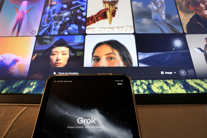 ▲当地时间2026年1月26日,美国佛罗里达州迈阿密,GrokImagine网站显示在iPad(前景)和电脑屏幕上。欧盟委员会已对马斯克的X平台展开调查,原因是担心其人工智能工具Grok被用于创建真实人物的性化图片图据视觉中国