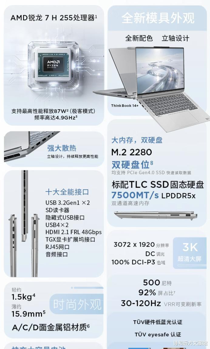 外观偏商务,但不呆板,白和灰更耐看,机身不重不厚,中间偏平衡,没有夸张的灯,也没有花里胡哨,说到底,ThinkBook这条线,走的是稳妥加一点性能的路子