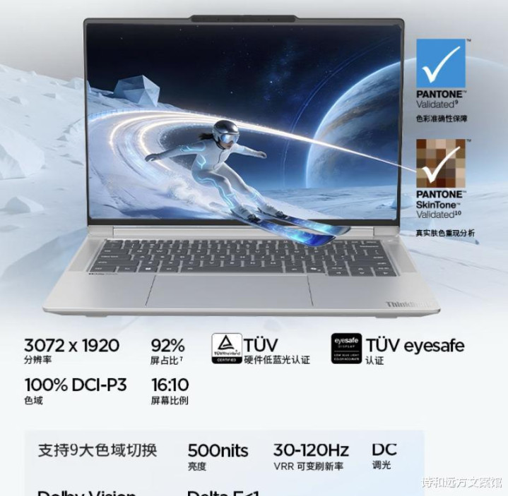 屏幕是重点,14.5英寸,分辨率3072×1920,刷新率120Hz,滑动更顺,文字更锐,亮度标到500尼特,室内没问题,室外阳光下能不能压住,可能差点,但日常也够用,广色域覆盖到DCI-P3百分百,颜色扎实,修图党笑了没?