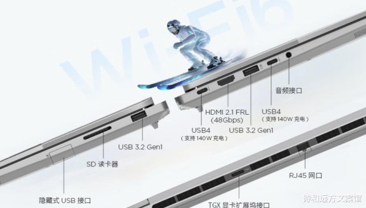 接口方面给得很满,两个USB-A 3.2 Gen1,两个USB4,米兰一个隐藏式USB-A,一个SD卡槽,一个HDMI 2.1,一个RJ45网口,一个3.5mm耳机口,再来一个TGX显卡扩展坞接口,简单说,日常外接都能搞,USB4不少人认为速度接近雷电级别,外接高速硬盘问题不大,HDMI 2.1更稳外接高刷显示器,摄影师插卡就走,网线直连也安排上,TGX这口挺少见,外接显卡坞,想要更强渲染,后期能升级吗?