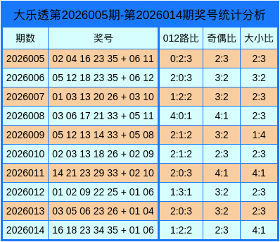 上期回顾:大乐透2026014开奖号码为:16、18、23、34、35 + 01、06。