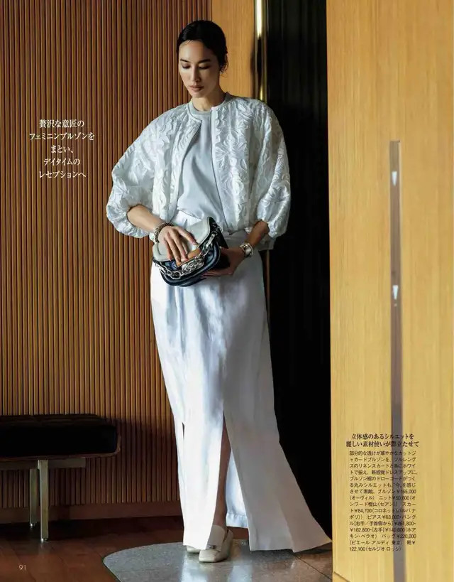 或是经受上短下长的搭配步地,一件白色的短外衣内搭白 T 恤,加上一条白色的开叉半身裙,就不错使多礼魄变成三七分,显高又显瘦了。