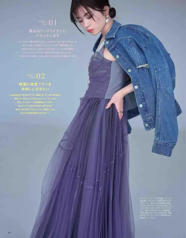 其实我们不妨不错果敢地尝试遴荐一条很有神秘感的紫色连衣裙。加上一件天生就领有前锋元素的蓝色牛仔外衣。就能呈现出仁爱又轮廓的娴雅造型。