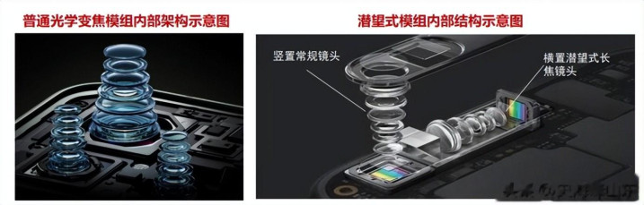 当然,手机影像的升级之路并不仅限于成像色彩画面,如何实现“高倍光学变焦”是另一大技术难关。传统的光学变焦技术要求摄像头镜头的长度随变焦倍数增大而增加。然而,智能手机对轻薄化的极致追求使得传统的长镜头结构难以在手机内部实现。为了解决这一难题,潜望式长焦技术应运而生。潜望式长焦技术通过微棱镜将光路转向,在不增加镜头长度的情况下实现高倍光学变焦,为手机拍照带来了全新的体验。
