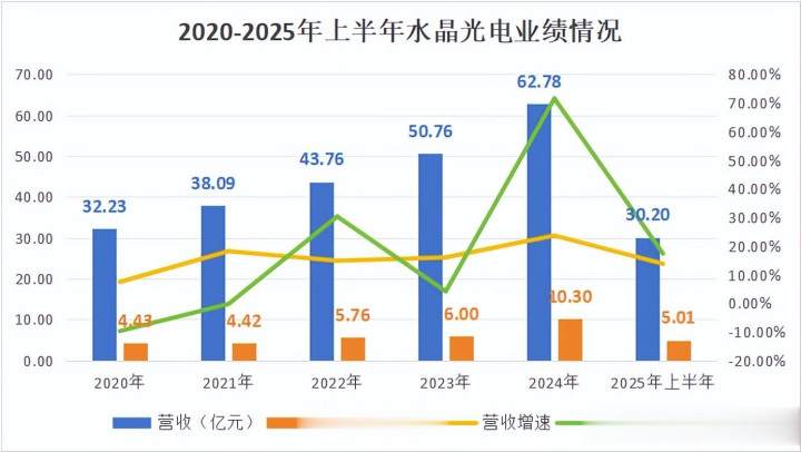 在核心元器件和薄膜面板业务的强劲驱动下,水晶光电的业绩实现了爆发式增长。从 2020 - 2024 年的数据来看,公司营收从 32.23 亿元增长到 62.78 亿元,几乎实现了翻倍增长;净利润从 4.43 亿元增长到 10.3 亿元,增长幅度超过一倍。这一系列数据充分展示了水晶光电在市场上的强大竞争力和良好的发展态势。